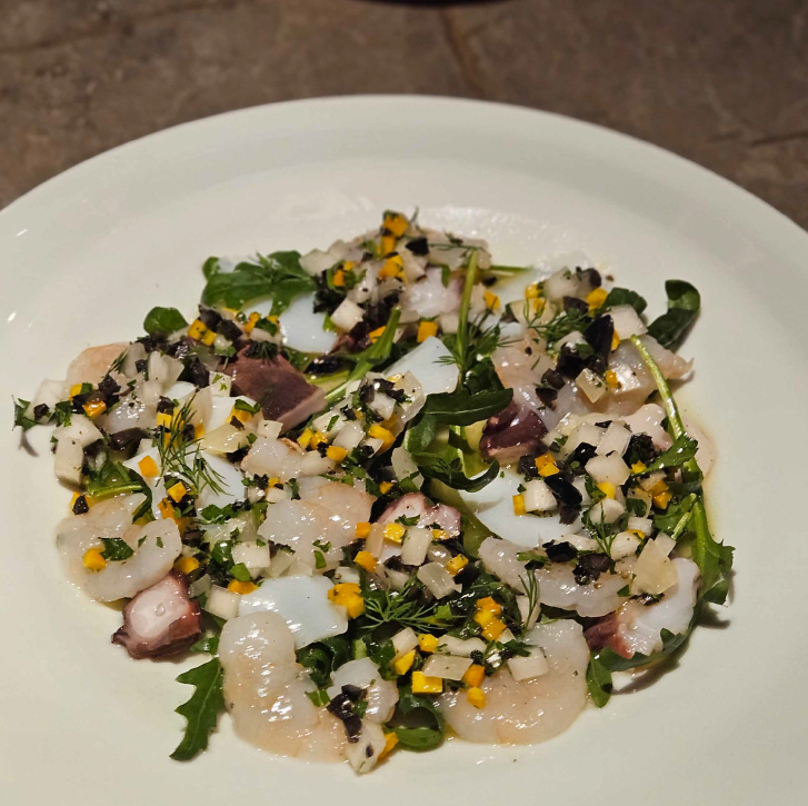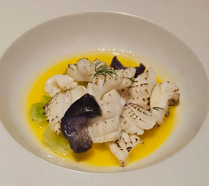 음식은 특정 국적에 얽매이지 않는 컨템포러리 스타일이다. 한식의 요소를 억지로 드러내기보다, 와인을 가장 잘 살릴 수 있는 방향을 우선한다. 와인의 산도, 질감, 바디를 고려한 페어링을 전제로 메뉴가 완성된다. 대표 메뉴인 돌문어·새우 세비체, 뵈르블랑 소스와 갑오징어, 해산물 요리들은 재방문을 이끄는 핵심 메뉴로 꼽힌다.