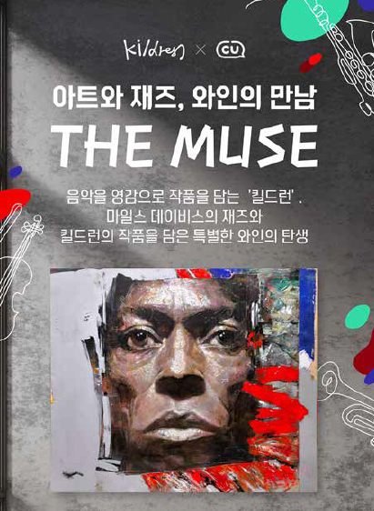 와인은 오랫동안 ‘맛’으로만 평가받아 왔다. 그러나 최근 소비자는 잔 안의 와인만큼이나 그 주변 요소들이 만들어내는 맥락에 더 민감하게 반응한다. 이제 중요한 것은 와인의 맛뿐만 아니라, 언제 마시고 어떤 분위기와 감각을 함께 경험하느냐다. CU가 기획한 ‘더 뮤즈’ 프로젝트는 이러한 변화의 흐름 위에서 출발한다. 그 첫 번째 에디션인 ‘더 뮤즈 마일스 데이비스’의 핵심은 단순한 라벨 디자인 변경이 아니라 와인을 예술과 음악의 매개체로 확장했다는 것이다. 킬드런은 스스로의 작업을 ‘비주얼 뮤직’이라 정의해온 작가인 만큼 음악에서 받은 감각을 색과 터치로 표현해왔고, 이번 프로젝트에서도 동일한 방식으로 접근했다. 와인을 먼저 시음한 뒤, 그 맛에서 떠오른 음악적 이미지를 회화로 풀어냈다.