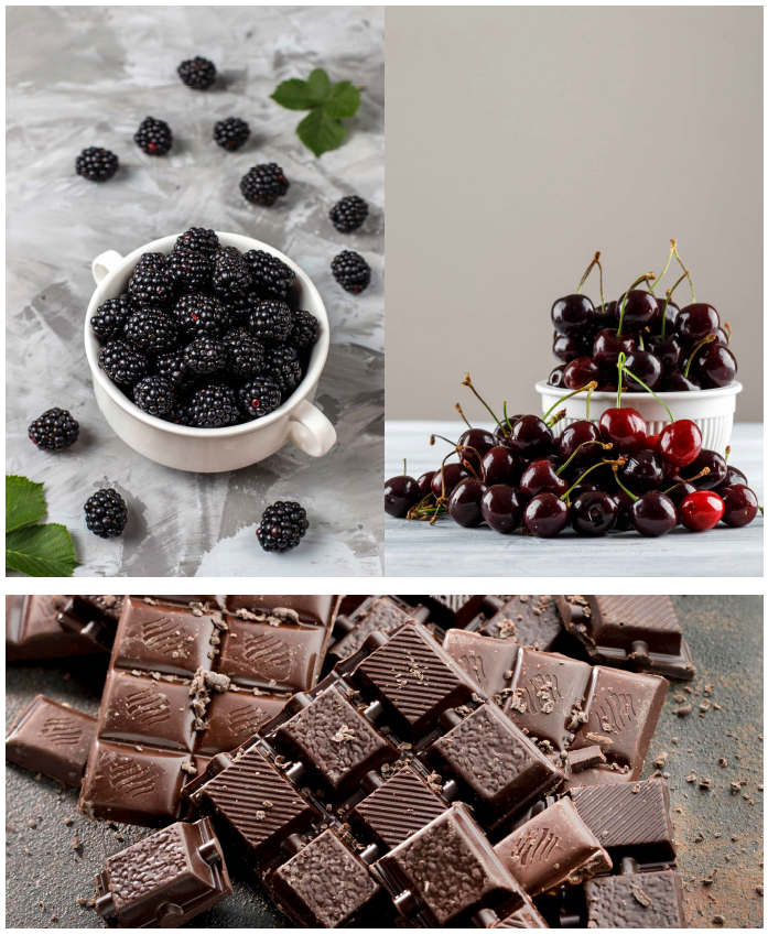 삼나무나 제비꽃 같은 아로마가 나타나기도 한다. 커피, 다크 초콜릿, 바닐라 같은 향들은 오크 숙성을 통해서 발생되는 부케로 반드시 포도 품종의 특성이라고 할 수는 없다.