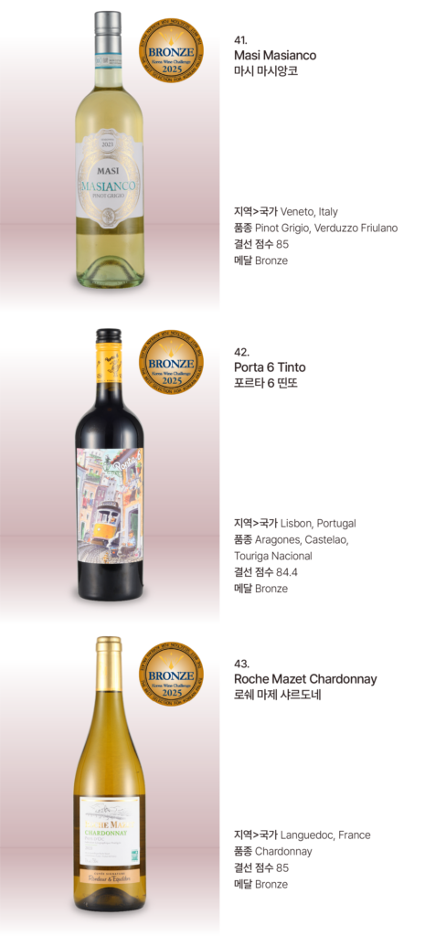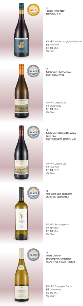 레뱅, 와이넬, 동원와인플러스 세 수입사와 이 수입사들의 KWC 2025수상 와인 전체 리스트를 소개한다. 이 가운데 일부 와인이 시음회에서 소개되었다.
