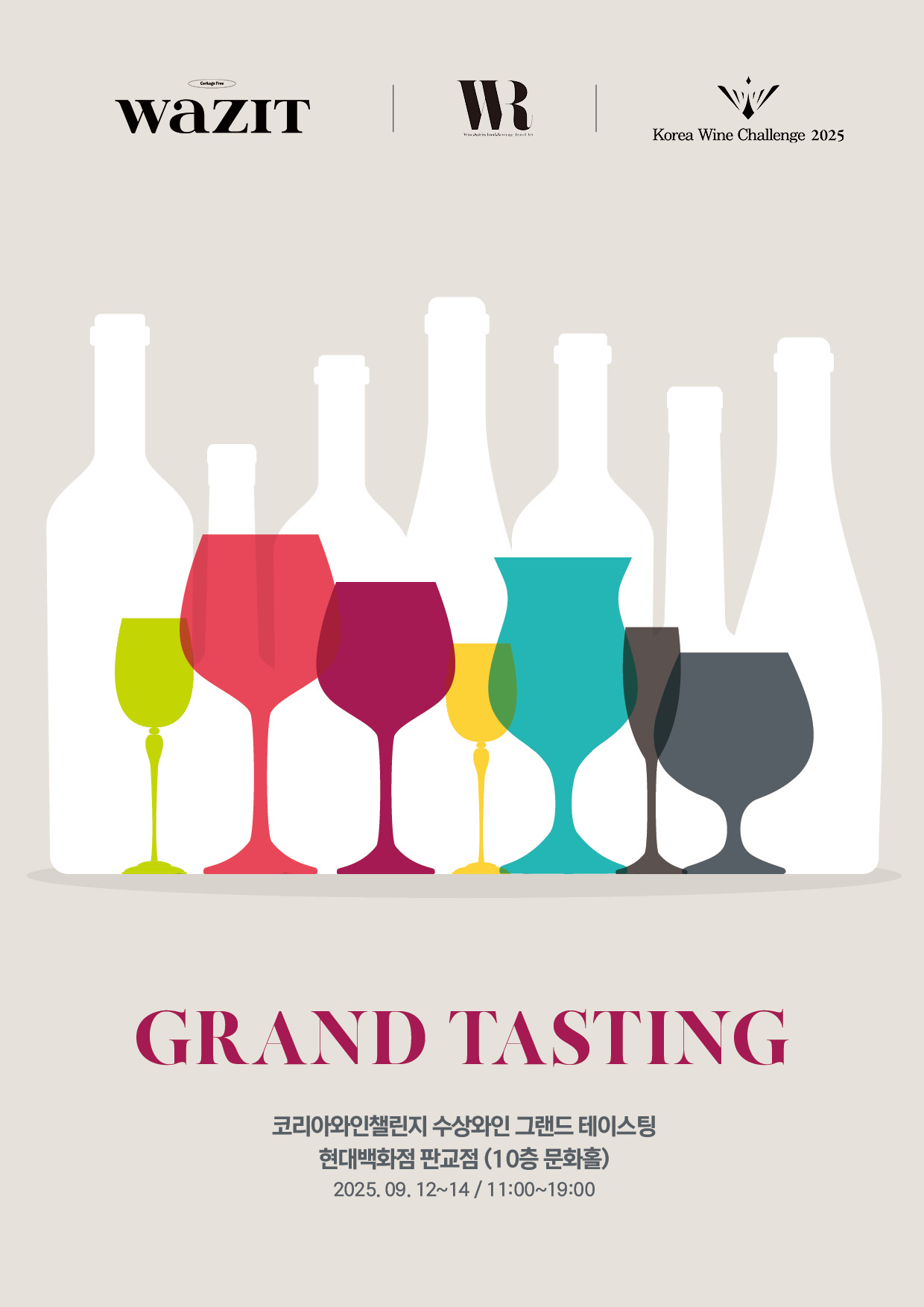 2025년 9월 12일~14일, 3일간 현대백화점 판교점 10층 문화홀에서 Korea Wine Challenge 2025 수상 와인들을 직접 만나볼 수 있는 ‘Korea Wine Challenge 수상 와인 그랜드 테이스팅’이 열린다. 국내 최고의 와인 전문가 50여명이 2주간 엄선한 KWC 수상 와인들이 올해 처음으로 일반 대중에게 선을 보이게 되는 것으로, 현장에서는 와인 시음은 물론 와인 구매까지 원스탑으로 이루어질 예정이며, 이 밖에도 푸드 페어링 부스, 럭키 드로우 등 다채로운 부대 행사가 마련될 예정이다.